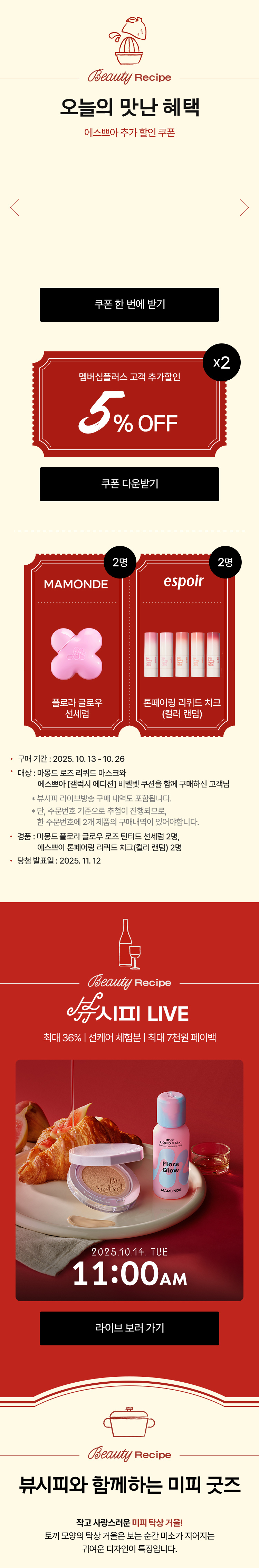 마몽드, 에스쁘아 뷰시피 제품 1개이상 포함된 마몽드, 에스쁘아 합산 7만원 이상 구매시 증정됩니다. (비회원 제외)