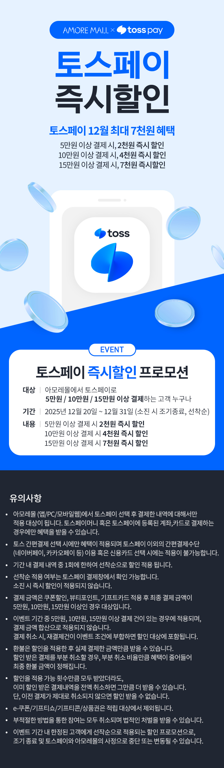 • 아모레몰 앱으로 접속하면 추가 할인 5% 쿠폰 증정