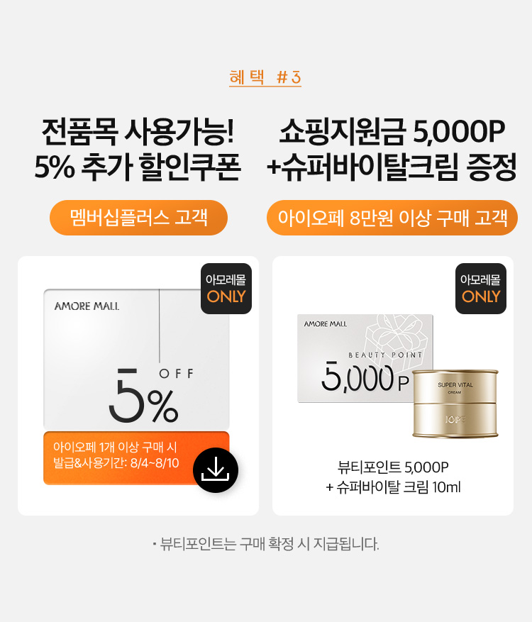뷰티포인트 전액 결제 시 스페셜 사은품과 기프트카드 증정 대상에서 제외됩니다.