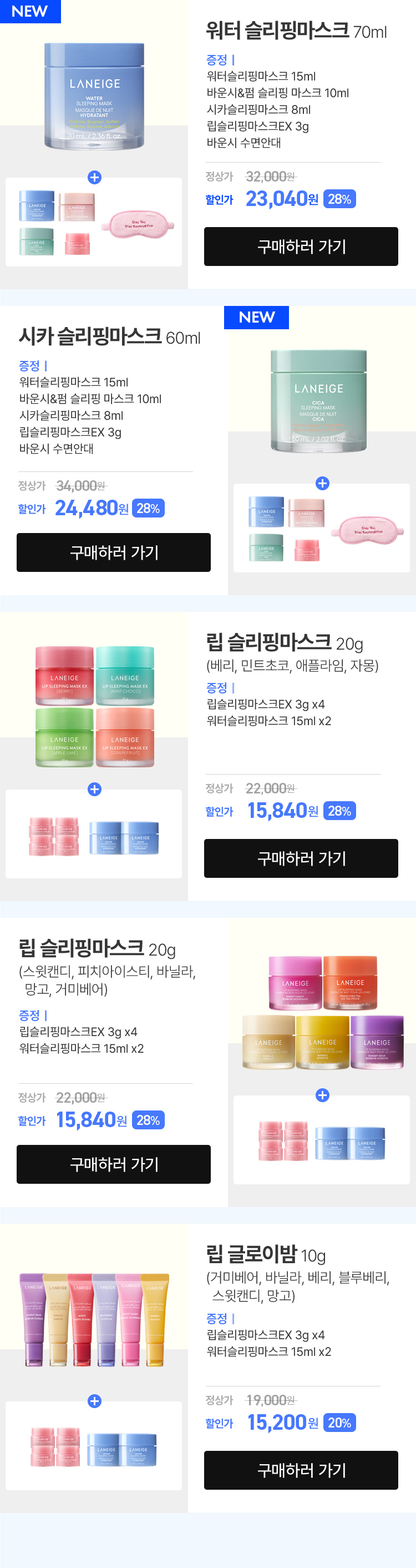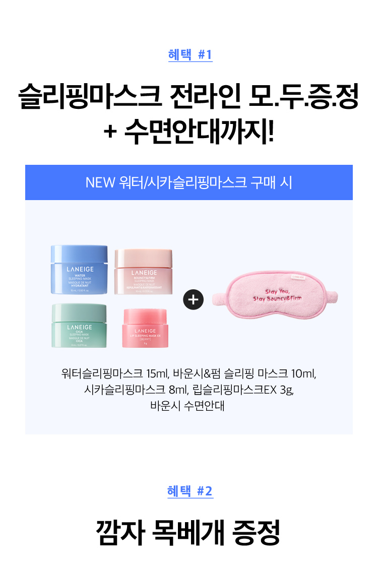 NEW워터/시카 슬리핑마스크 일대일 증정혜택은 시카슬리핑마스크 60ml, 워터슬리핑마스크 70ml 용량제품에 해당됩니다.(소용량X)