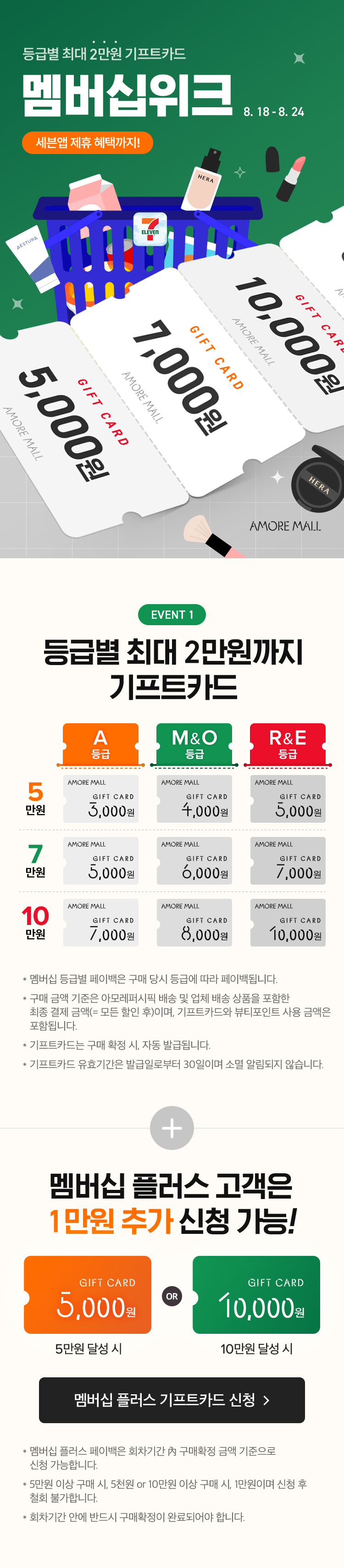 • 멤버십 플러스 기프트카드는 해당 회차 누적 구매금액(구매확정금액) 기준으로 별도 신청하셔야합니다.