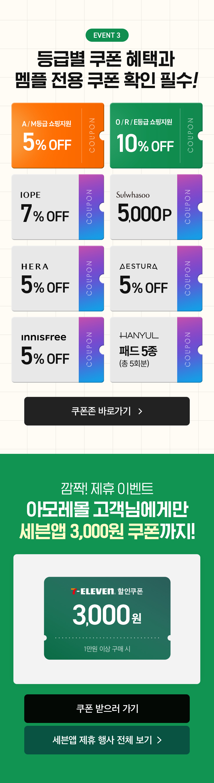 • 아모레몰 앱으로 접속하면 추가 할인 5% 쿠폰 증정