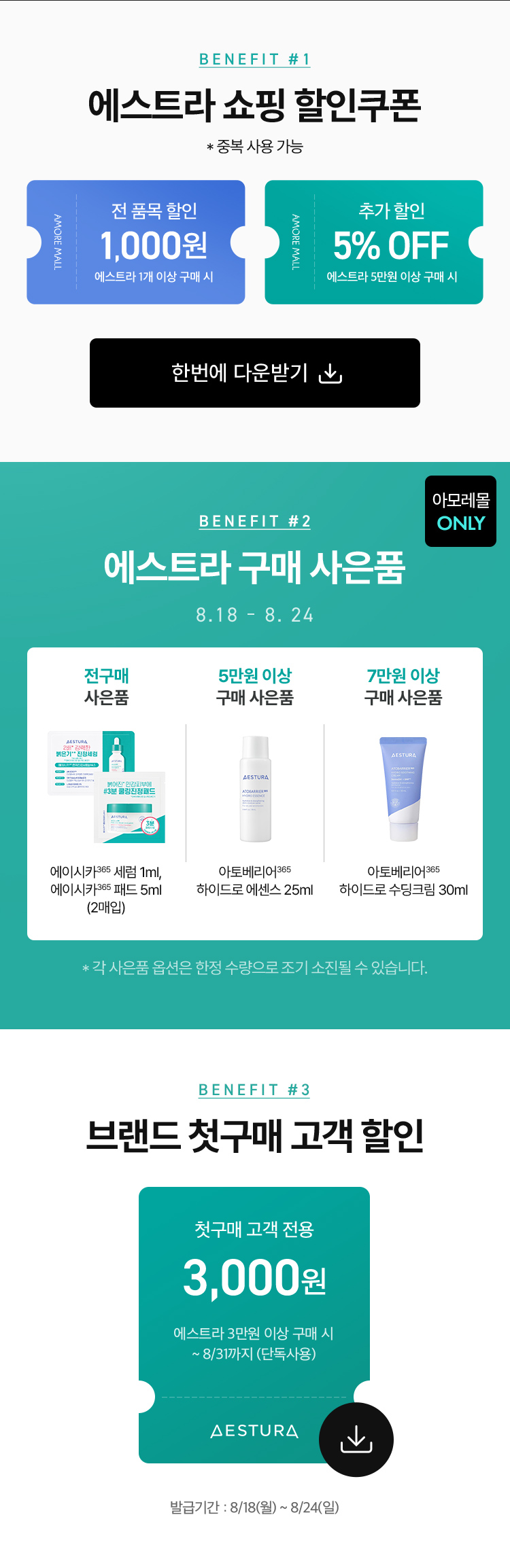 • 아모레몰 앱으로 접속하면 추가 할인 5% 쿠폰 증정