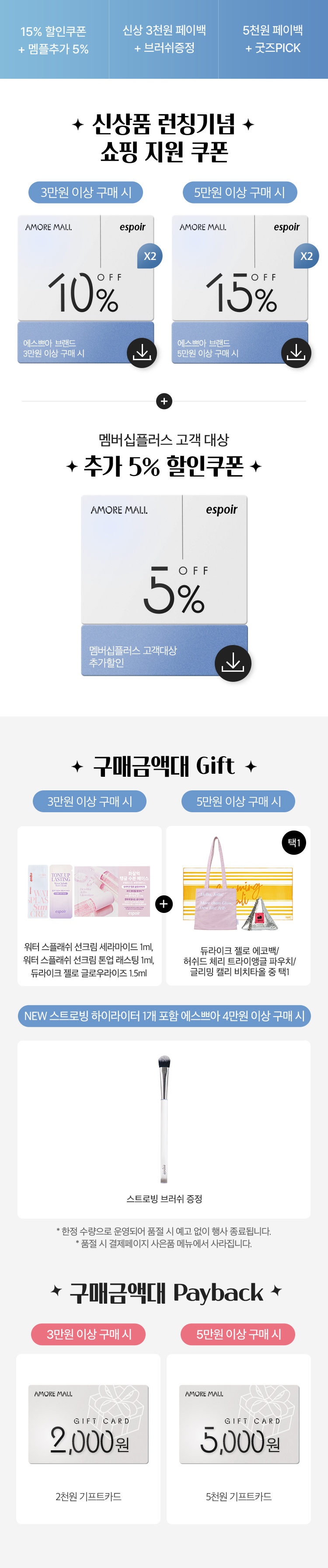 • 구매금액대 사은품은 [ ①모든 할인 적용 후 + ②뷰티포인트 및 기프트카드 차감 전 ] 금액이 증정 조건을 넘은 경우, 지급 됩니다.