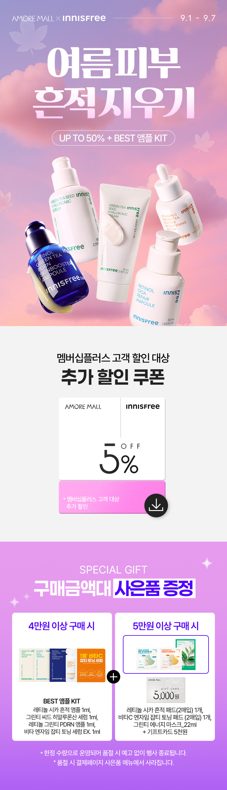 • 아모레몰 앱으로 접속하면 추가 할인 5% 쿠폰 증정