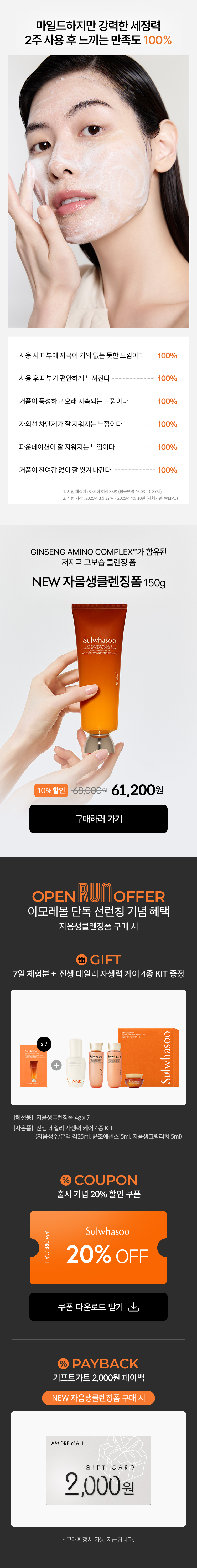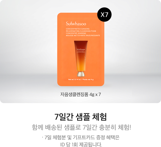 오픈런 혜택 체험용 샘플은 자음생클렌징폼 4g*7매입니다.
