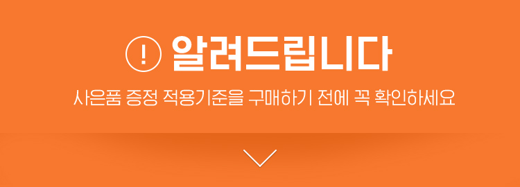 사은품 조기소진 시, 예고없이 사은품의 대체 혹은 행사가 종료될 수 있습니다.