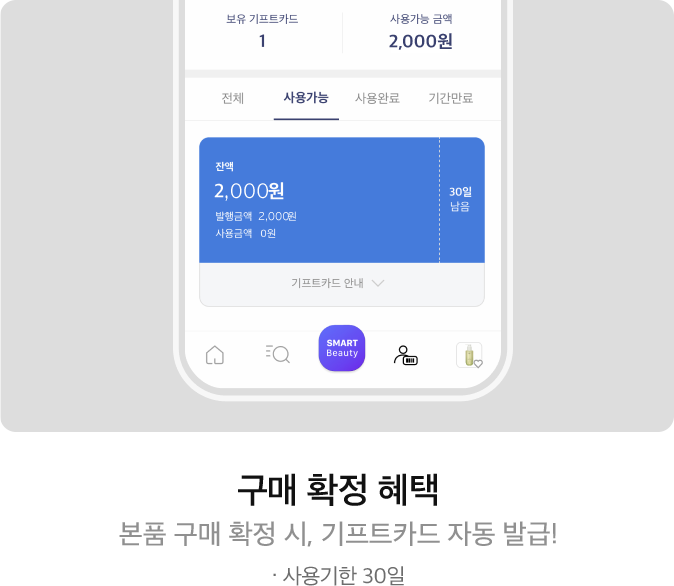 뷰티포인트 전액 결제 시 스페셜 사은품 및 기프트카드 증정대상에서 제외됩니다.