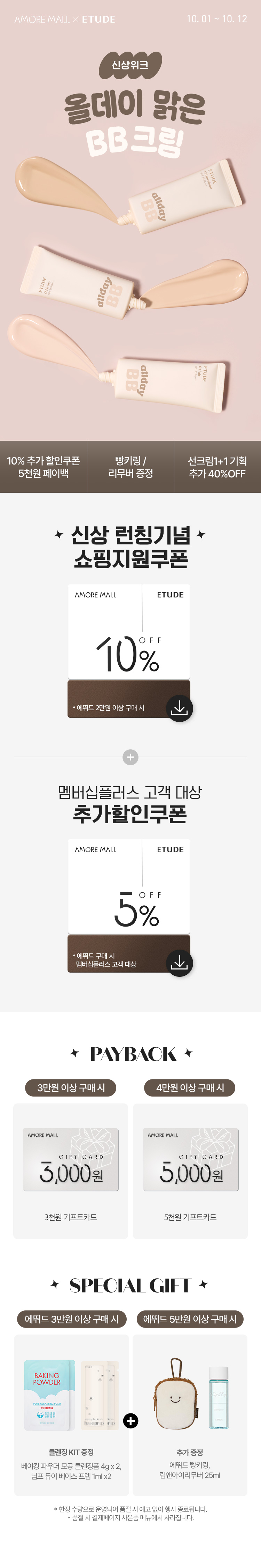 뷰티포인트 전액 결제 시 스페셜 사은품과 기프트카드 증정 대상에서 제외됩니다.