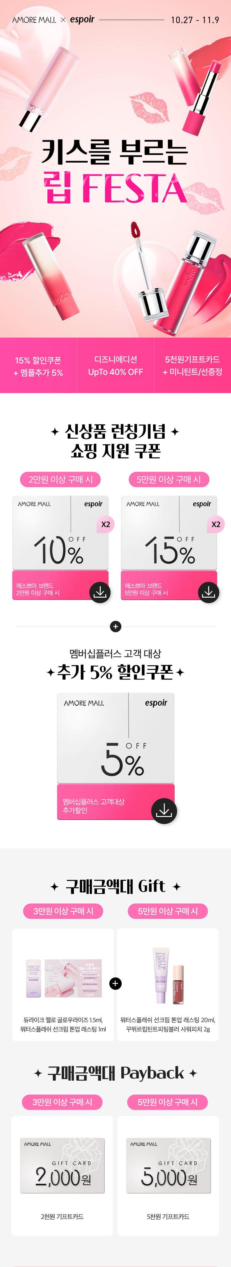 뷰티포인트 전액 결제 시 스페셜 사은품과 기프트카드 증정 대상에서 제외됩니다.