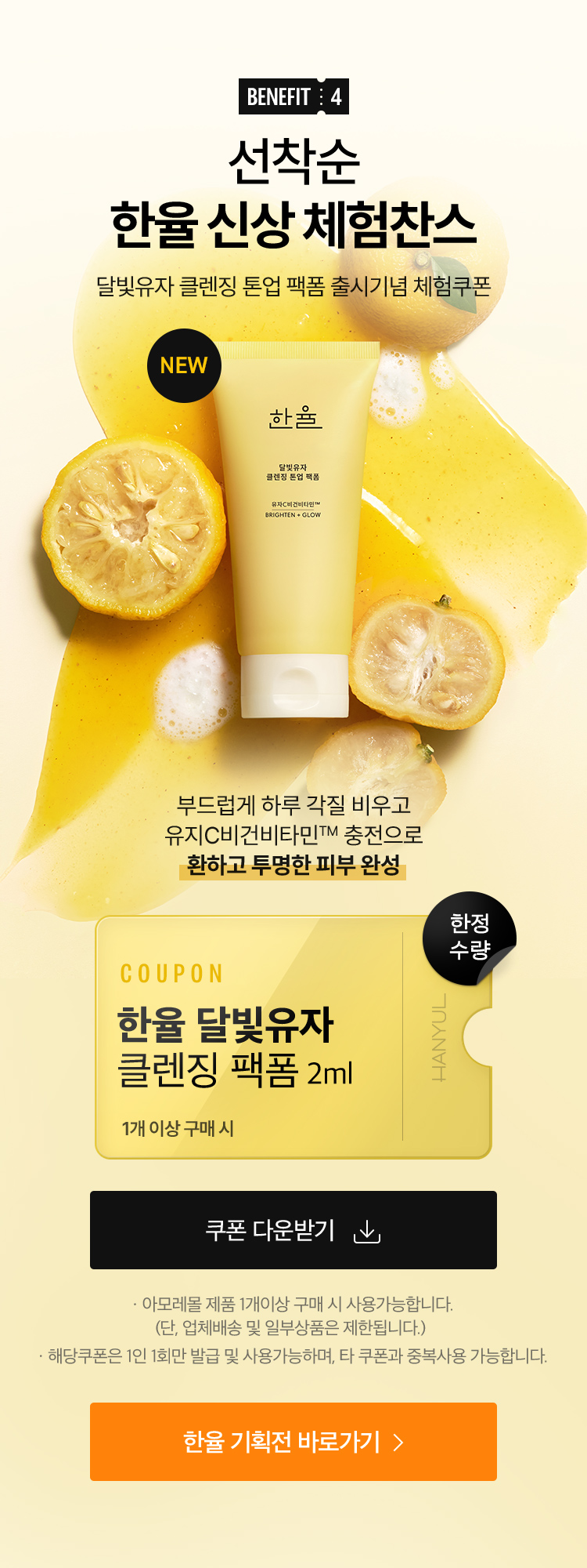 [한율 신상 달빛유자 클렌징 쿠폰 안내]
