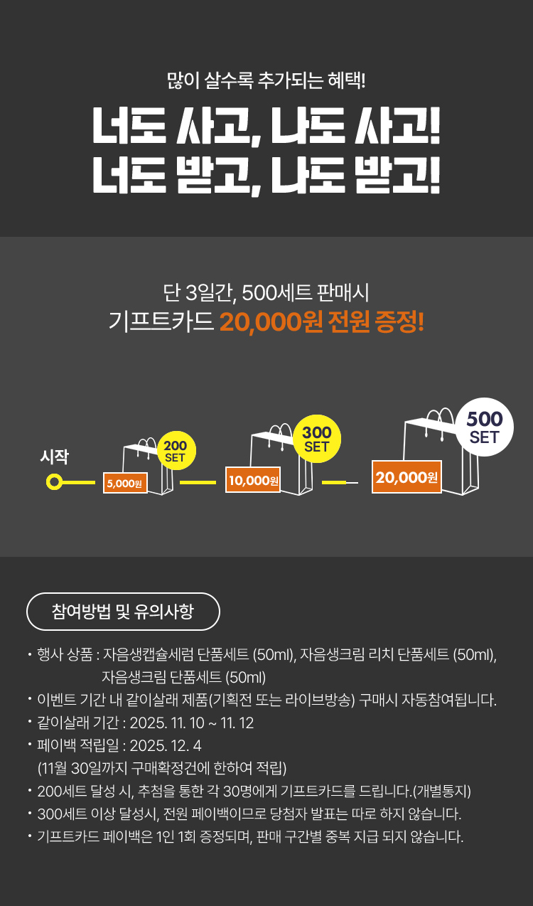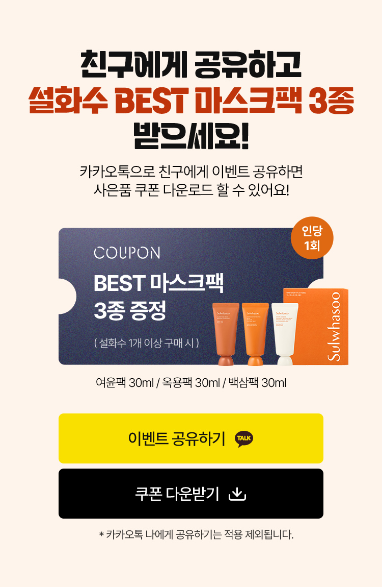 뷰티포인트 전액 결제 시 스페셜 사은품 및 기프트카드 증정대상에서 제외됩니다.