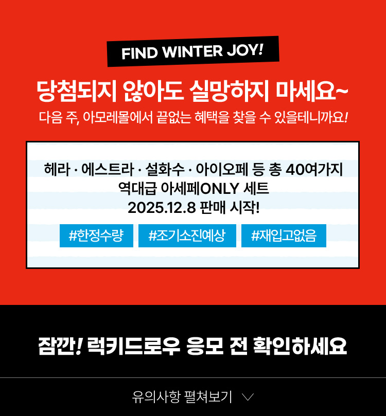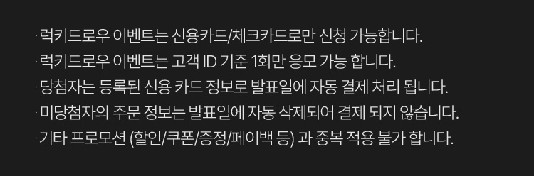 럭키드로우 제품의 경우 기타 할인, 사은품, 페이백 등 기타 프로모션 적용 제외 됩니다.