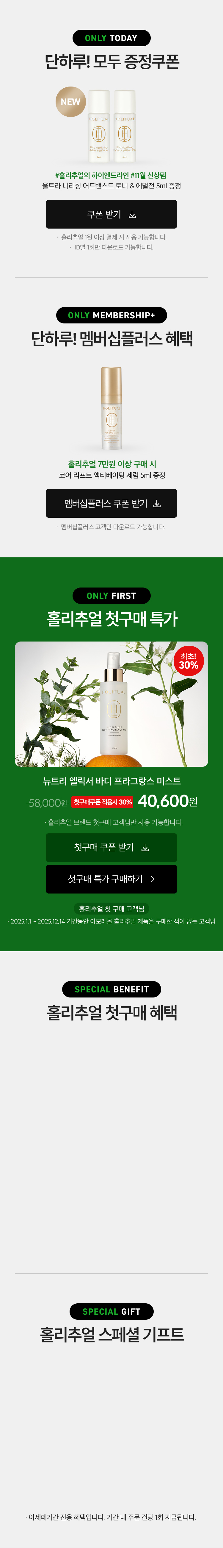 뷰티포인트 전액 결제 시 스페셜 사은품 및 기프트카드 증정대상에서 제외됩니다.