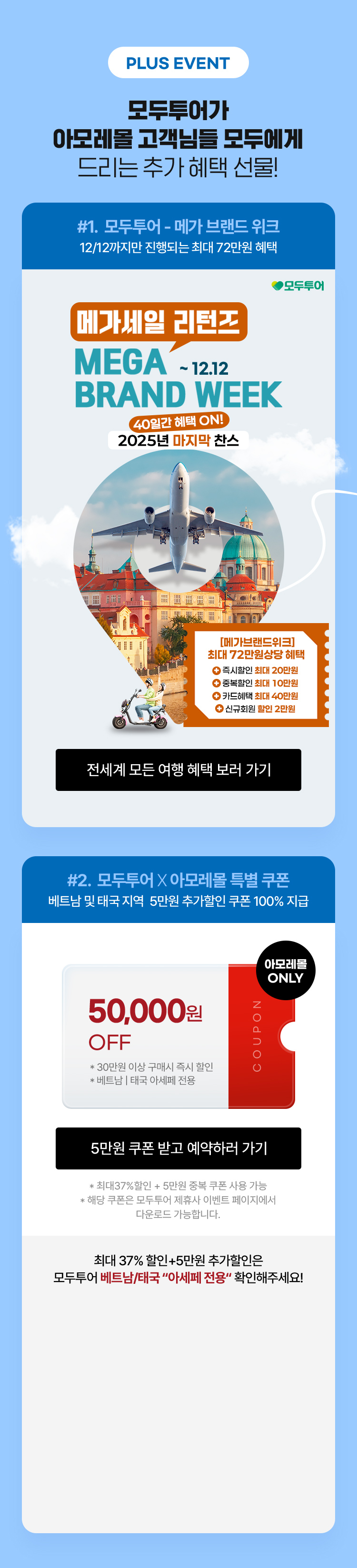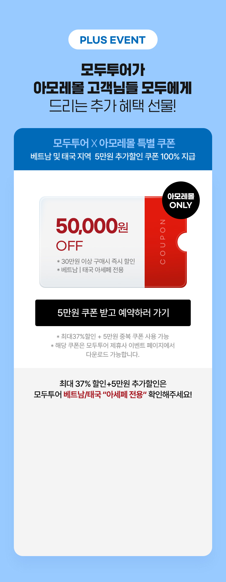 PLUS EVENT 및 쿠폰 관련 자세한 사항은 모두투어 이벤트 페이지에서 확인 부탁드립니다.