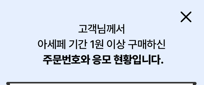 아세페 기간(12월 8일-23일) 1원이상 주문(단, 뷰티포인트, 기프트카드 결제금 제외)시 응모권이 1장 발급됩니다.