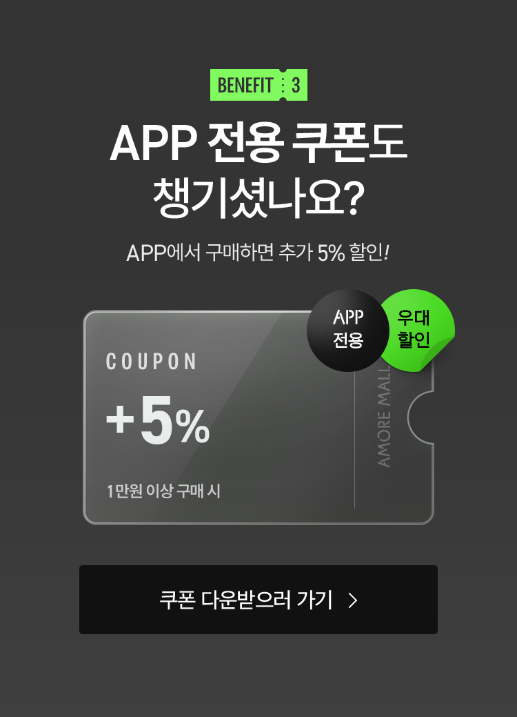 APP전용 추가5% 할인쿠폰은 APP에서 사용가능하며, ID당 월 1회 사용가능합니다.
