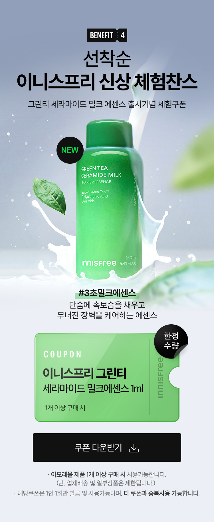 [이니스프리 신상 그린티 밀크에센스 체험 쿠폰 안내]