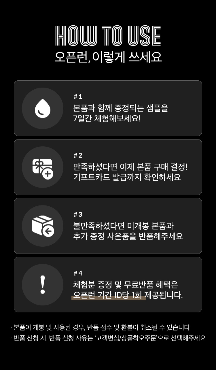 교환 및 환불 시 사은품을 동봉해주셔야합니다.