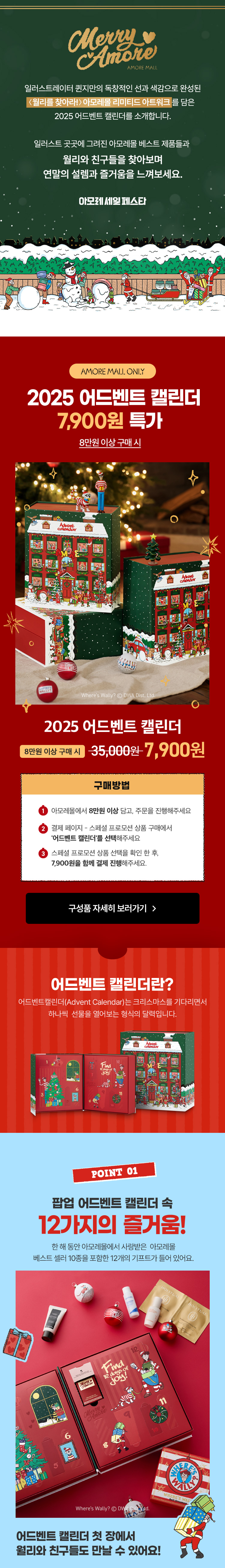 2025어드벤트캘린더는 아모레몰 8만원이상 구매시, 스페셜 프로모션 할인가 7,900원 결제로 받으실 수 있습니다.
