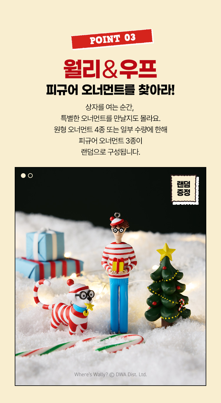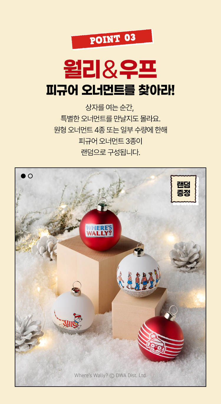 2025어드벤트캘린더 속 월리를 찾아라 오너먼트는 랜덤으로 발송되며, 제품 수령 후 랜덤 구성에 대한 불만족으로 반품 하실 수는 없습니다.
