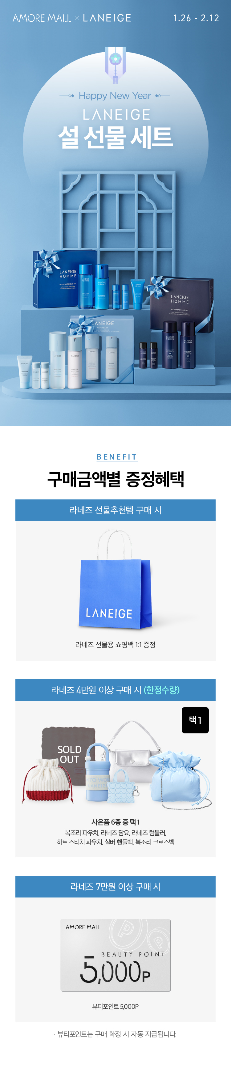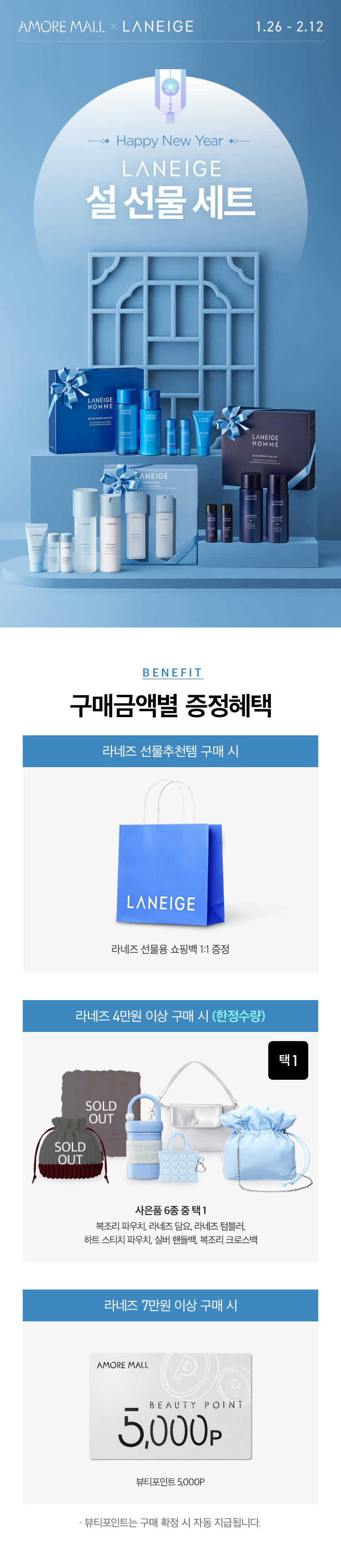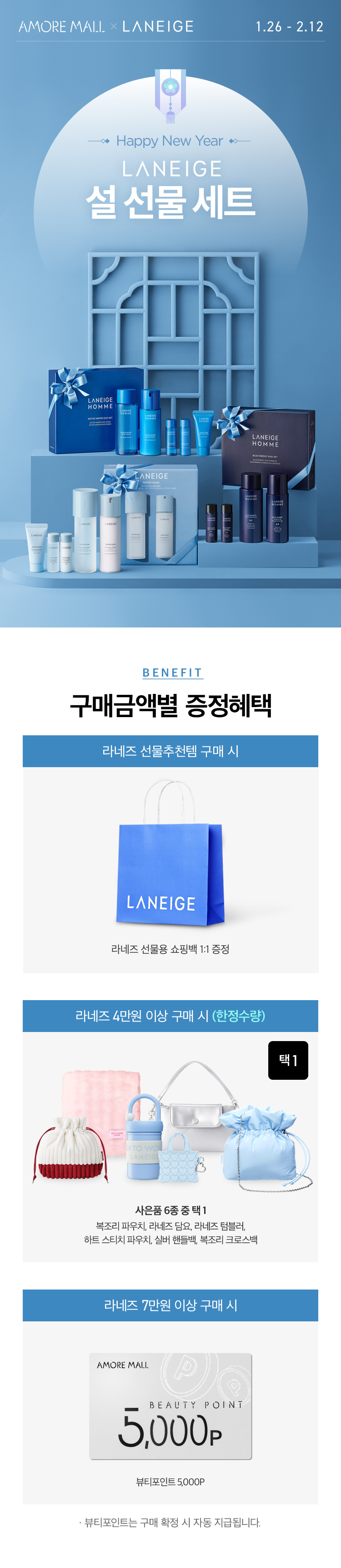 구매금액대 사은품은 최종 결제금액 기준(모든 할인 적용 후, 뷰티포인트, 기프트카드 사용금액 포함)으로 증정됩니다.