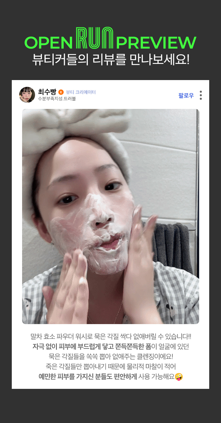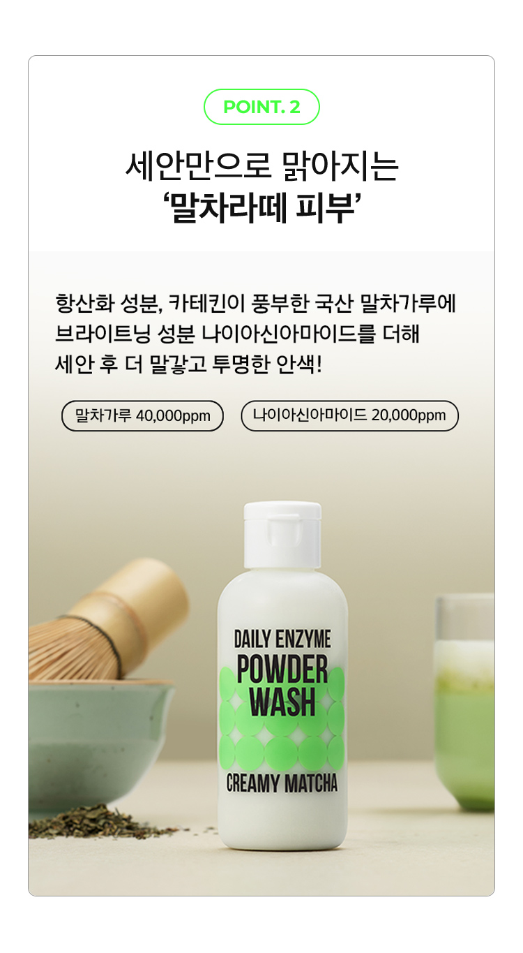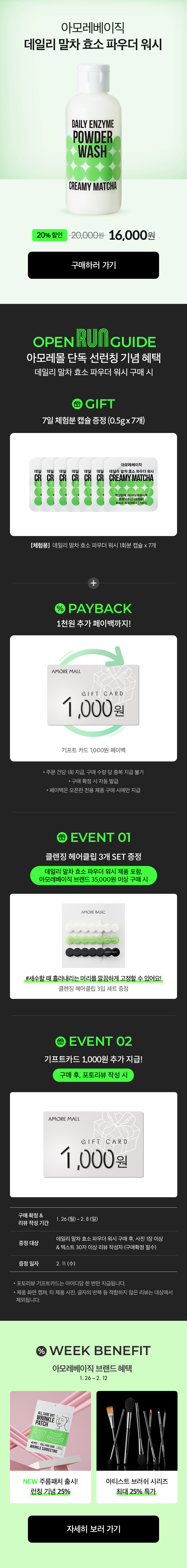 오픈런 혜택 체험용 샘플은 데일리 말차 효소 파우더 워시 1회분 캡슐*7개입니다.