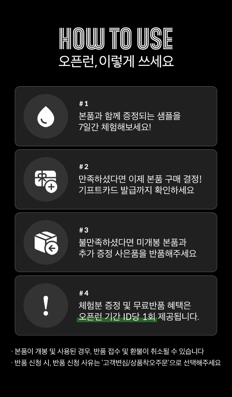 체험용 샘플은 오픈런 해당 상품에만 제공되며 기간 내 id당 1회만 제공됩니다.