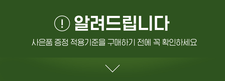 사은품 조기 소진 시, 예고없이 사은품의 대체 혹은 행사가 종료될 수 있습니다.