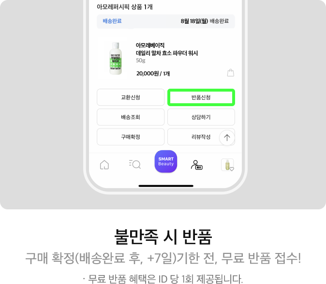 본품 미개봉 / 미사용 검수 후, 반품 완료 및 환불처리 됩니다.