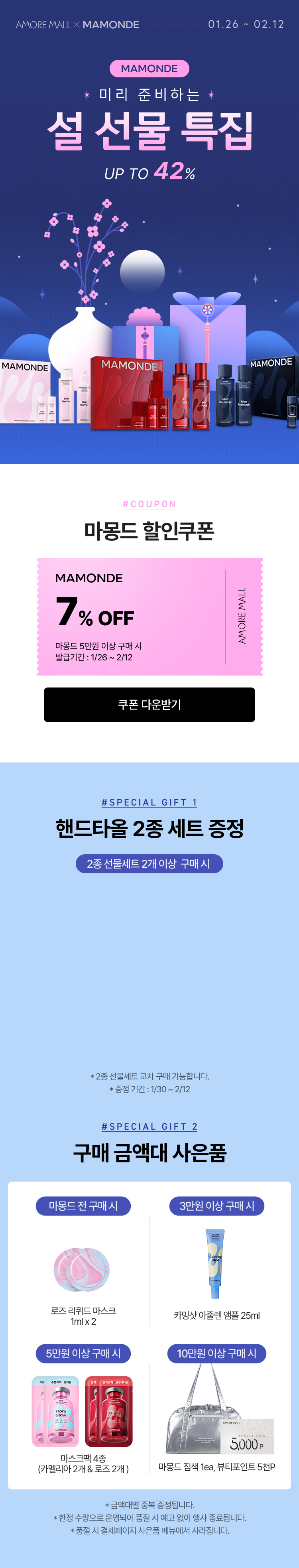 • 아모레몰 앱으로 접속하면 추가 할인 5% 쿠폰 증정