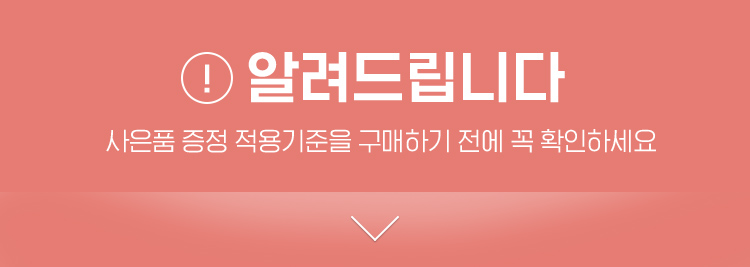 뷰티포인트 전액 결제 시 스페셜 사은품 및 기프트카드 증정대상에서 제외됩니다.