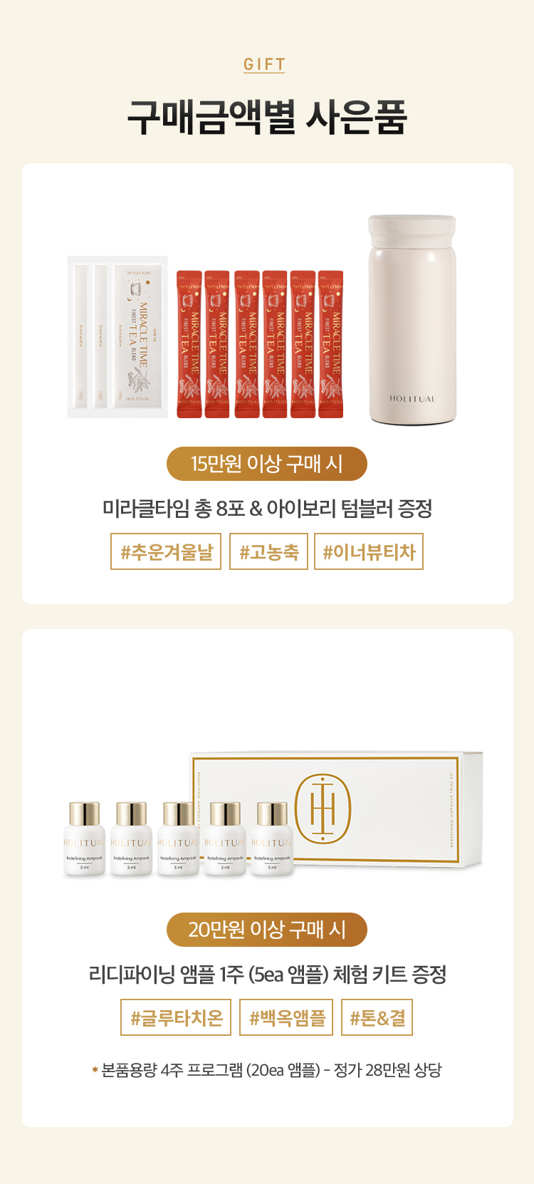 구매금액대 사은품은 상품할인, 쿠폰할인 적용 후 실 결제금액 달성 시 적용 됩니다.