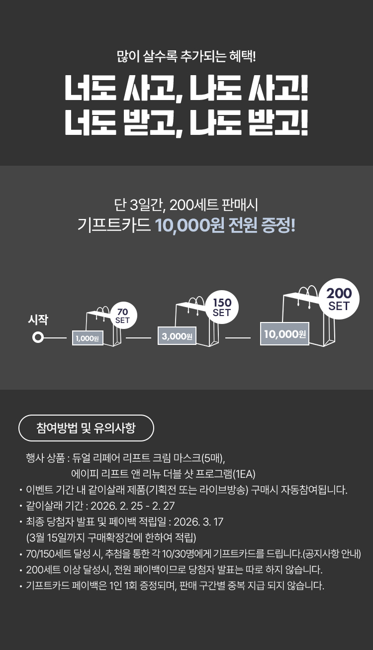 조기 소진, 증정 마감 등의 공지는 실제 시점과 행사페이지 내 반영시점이 다를 수 있습니다.
