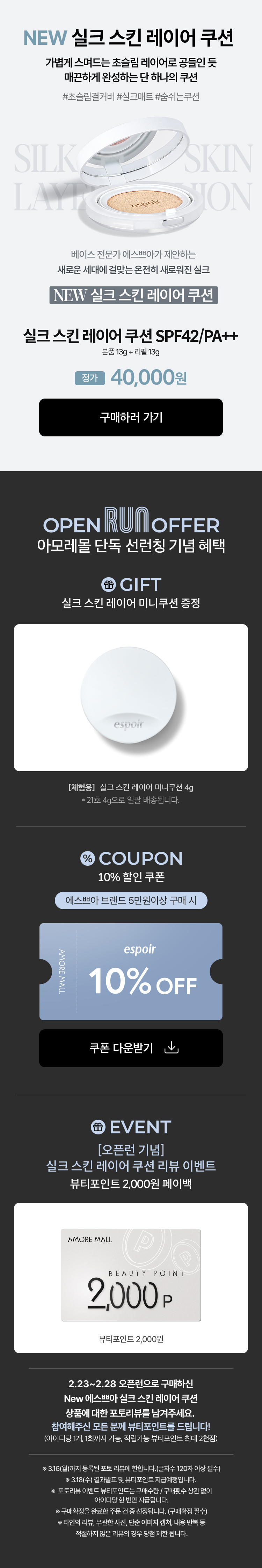 뷰티포인트 전액 결제 시 스페셜 사은품과 기프트카드 증정 대상에서 제외됩니다.