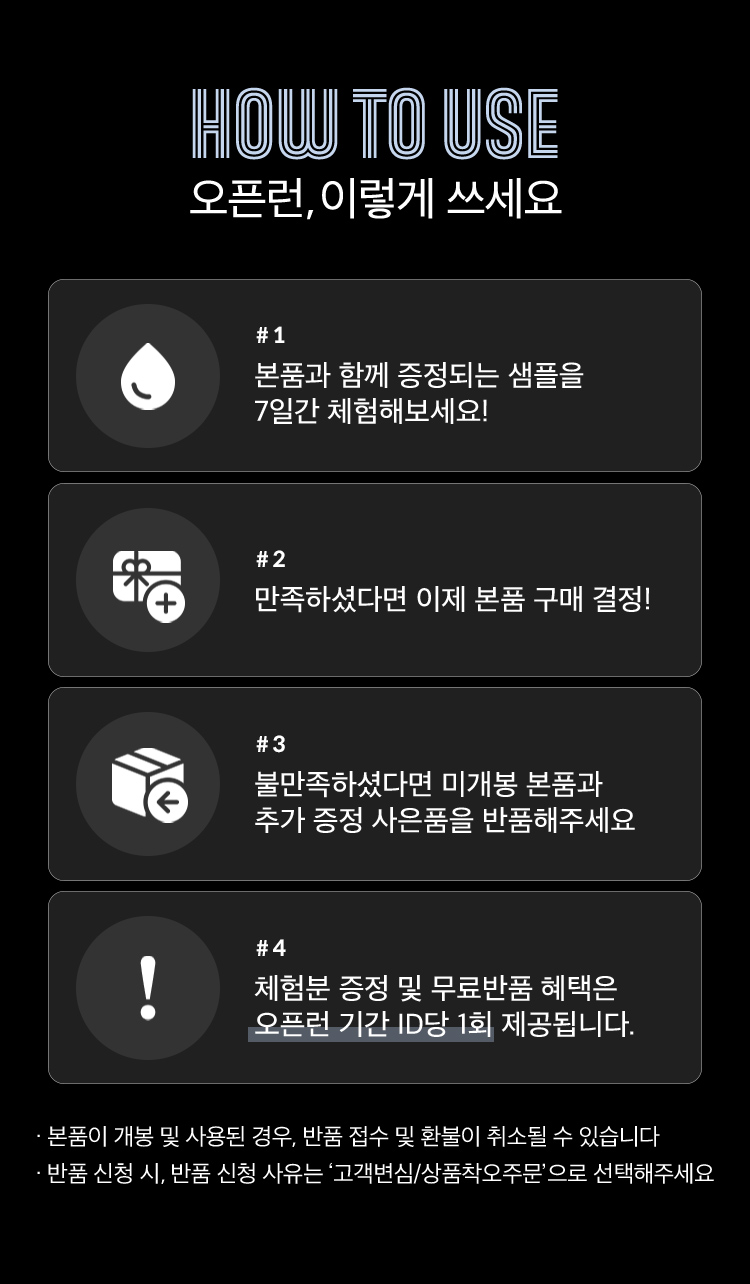 교환 및 환불 시, 사은품을 동봉해 주셔야 합니다.