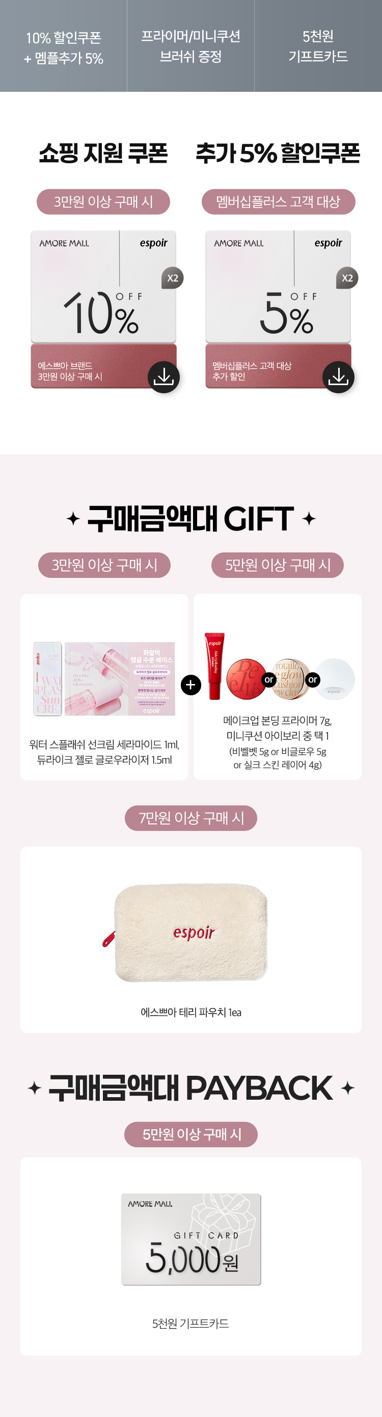 • 아모레몰 앱으로 접속하면 추가 할인 5% 쿠폰 증정