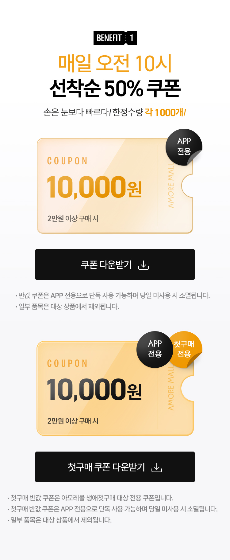 선착순 첫구매 반값쿠폰은 APP 전용쿠폰으로 APP에서만 사용이 가능합니다.