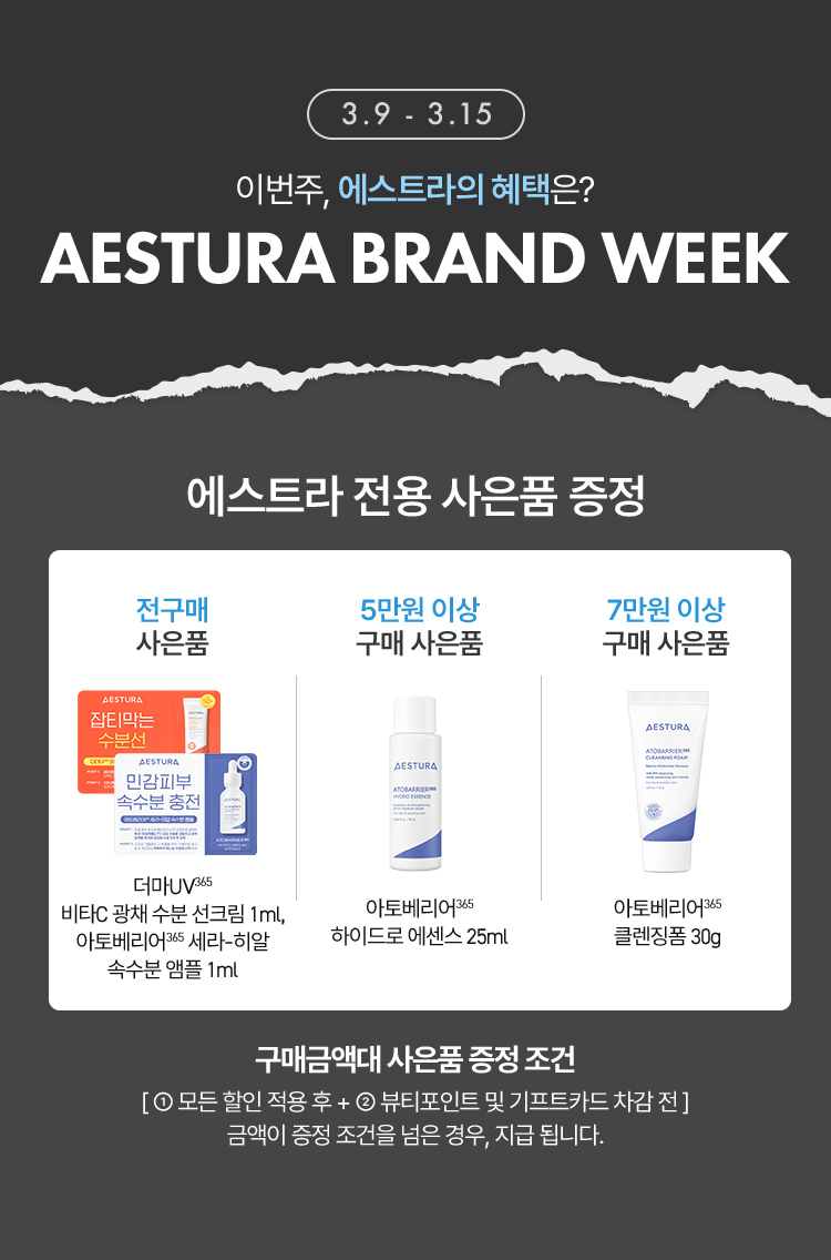 뷰티포인트 전액 결제 시 스페셜 사은품 및 기프트카드 증정대상에서 제외됩니다.