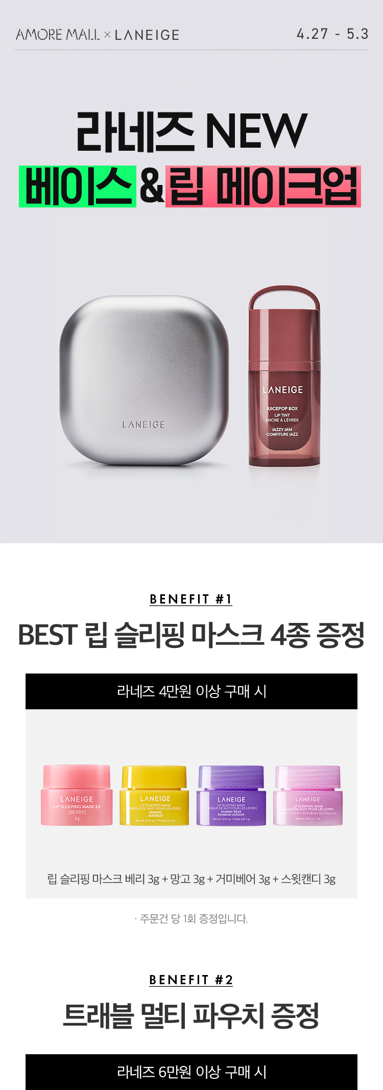 구매금액대 사은품은 최종 결제금액 기준(모든 할인 적용 후, 뷰티포인트, 기프트카드 사용금액 포함)으로 증정됩니다.