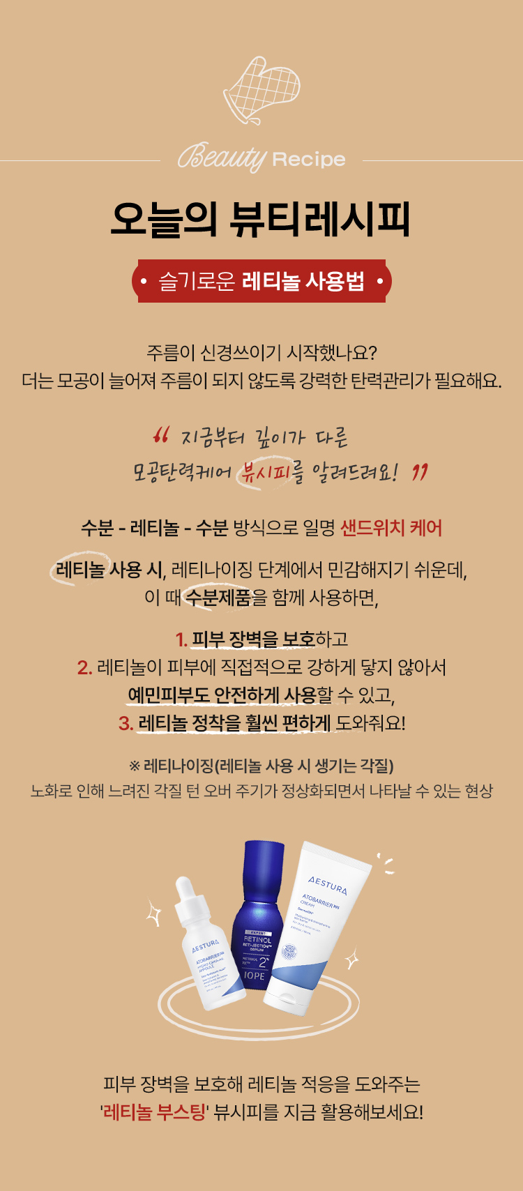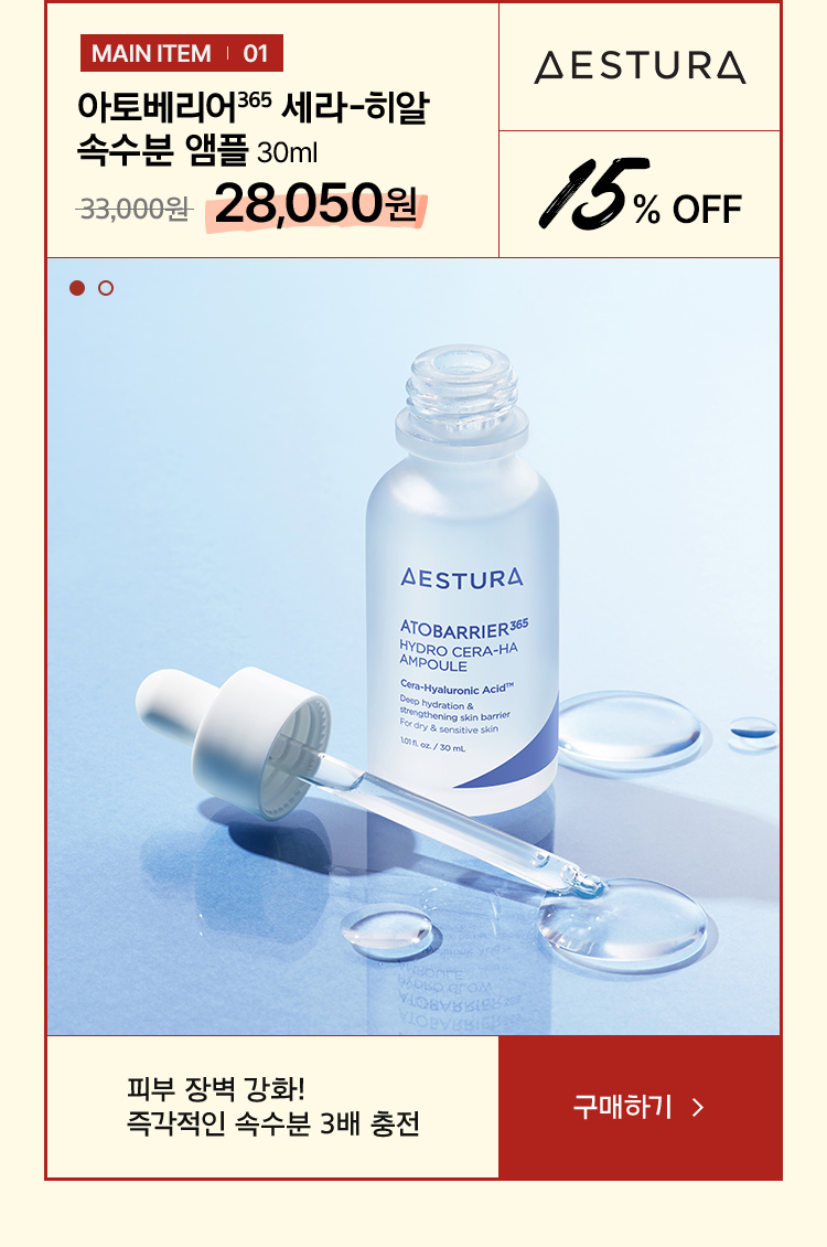 아이오페, 에스트라 뷰시피 제품 : 에스트라 레티놀 레티젝션 세럼, 에스트라 아토베리어365 크림, 에스트라 아토베리어365 세라-히알 속수분앰플