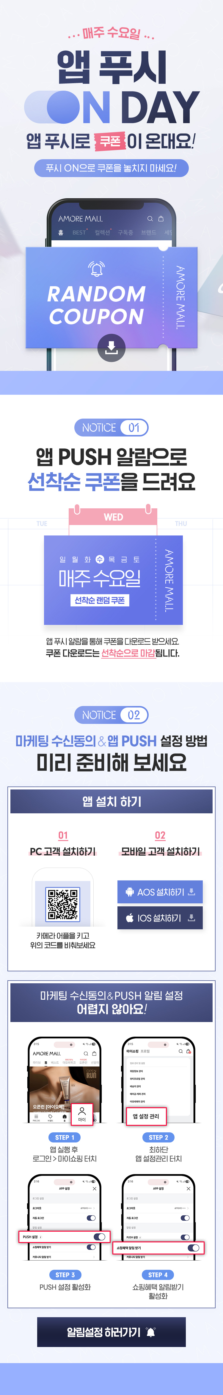 • 기존 앱 푸시 수신 거부 고객은 앱 재설치 후 동의 진행시 정상적으로 수신 받으실 수 있습니다.