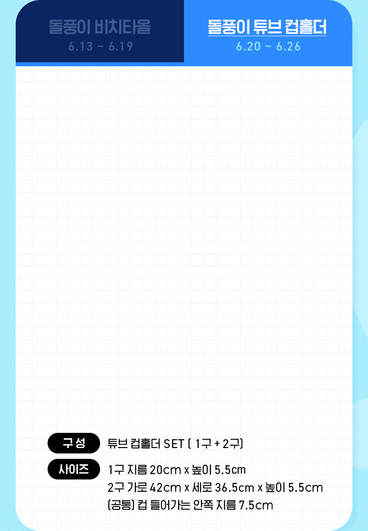 돌풍이 튜브 컵홀더 사이즈 안내 : 1구 - 20x20x5.5cm / 2구 - 42x36.5x5.5cm